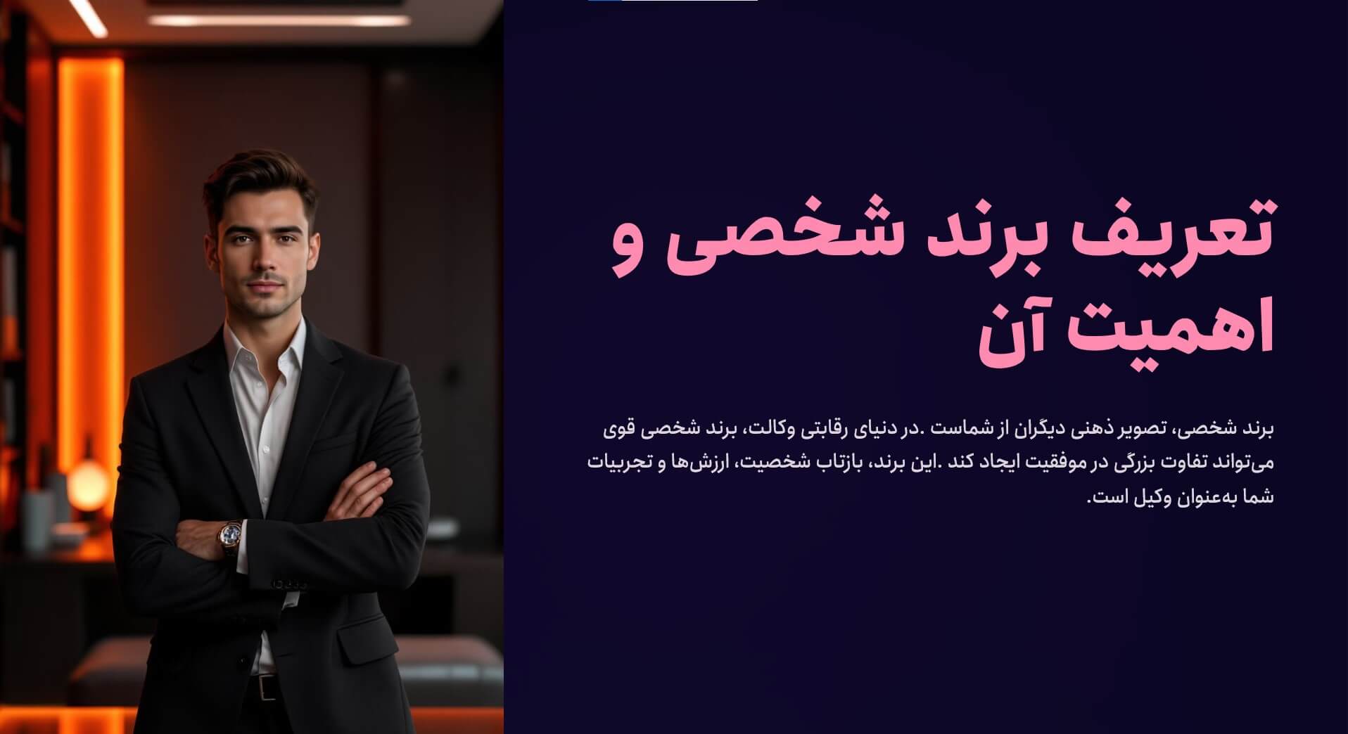 در دنیای امروز که رقابت در حرفه وکالت بسیار شدید شده، داشتن یک برند شخصی قوی میتواند تفاوت بزرگی در موفقیت شما ایجاد کند. برند شخصی شما چیزی فراتر از کارت ویزیت یا پروفایل آنلاین شماست؛ این برند، بازتاب شخصیت، ارزشها و تجربیات شما بهعنوان وکیل است و نقشی کلیدی در جذب و نگهداری موکلان دارد. در این جلسه به تعریف برند شخصی و اهمیت آن برای وکلا میپردازیم.