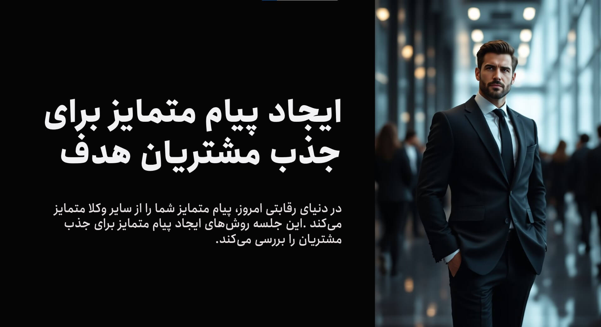 در دنیای پررقابت امروز، داشتن یک پیام متمایز و مشخص میتواند شما را از سایر وکلا و دفاتر حقوقی متمایز کند. پیام متمایز به شما کمک میکند تا در ذهن مشتریان بهعنوان یک گزینه ویژه و منحصربهفرد ثبت شوید. در این جلسه، به روشهای ایجاد یک پیام متمایز برای جذب مشتریان هدف میپردازیم و به شما نشان میدهیم که چگونه میتوانید با استفاده از این پیامها مشتریان بیشتری جذب کنید.