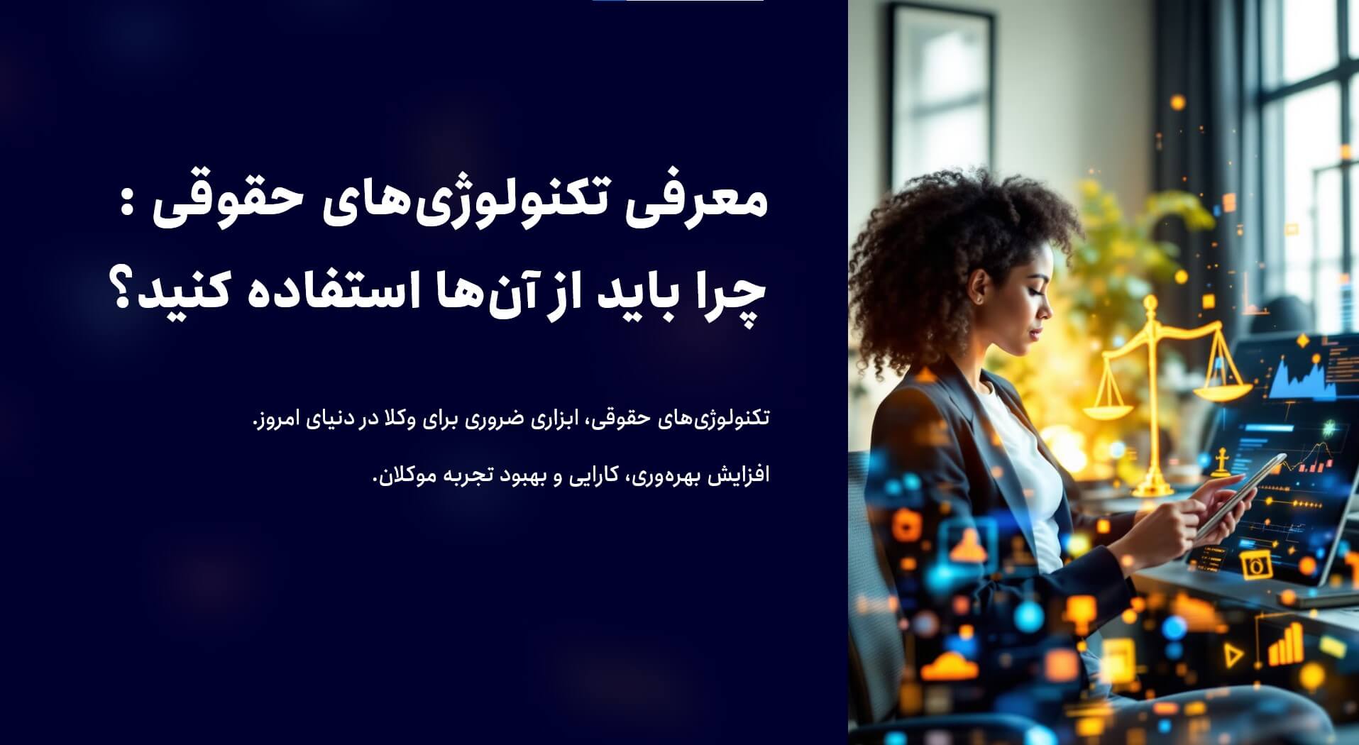 در دنیای امروز، استفاده از تکنولوژیهای حقوقی به یکی از ابزارهای مهم و ضروری برای وکلا تبدیل شده است. این تکنولوژیها نه تنها به سادهسازی و خودکارسازی بسیاری از فرآیندهای حقوقی کمک میکنند، بلکه بهرهوری و کارایی دفتر وکالت را نیز افزایش میدهند. همچنین، استفاده از این فناوریها میتواند تجربه موکلان را بهبود بخشیده و باعث ایجاد تمایز در بازار رقابتی شود. در این جلسه، به معرفی تکنولوژیهای حقوقی و دلایل استفاده از آنها میپردازیم.