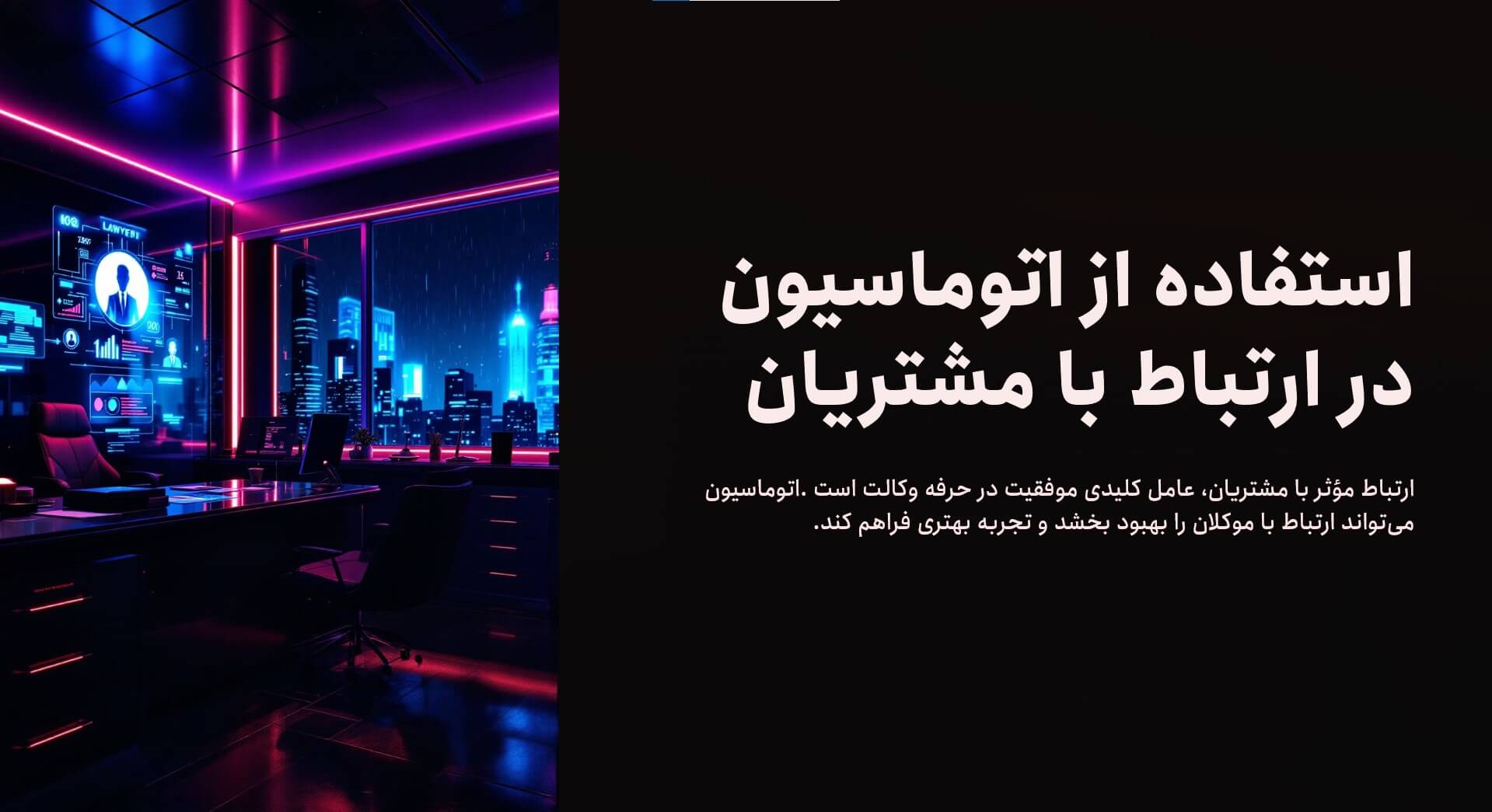 در دنیای پرسرعت امروز، ارتباط مؤثر با مشتریان یکی از مهمترین عوامل موفقیت در حرفه وکالت است. استفاده از ابزارهای اتوماسیون میتواند به شما کمک کند تا ارتباط با موکلان را بهبود بخشید، زمان خود را بهینه کنید و تجربه بهتری برای موکلان فراهم کنید. در این جلسه به بررسی روشهای استفاده از اتوماسیون در ارتباط با مشتریان میپردازیم.