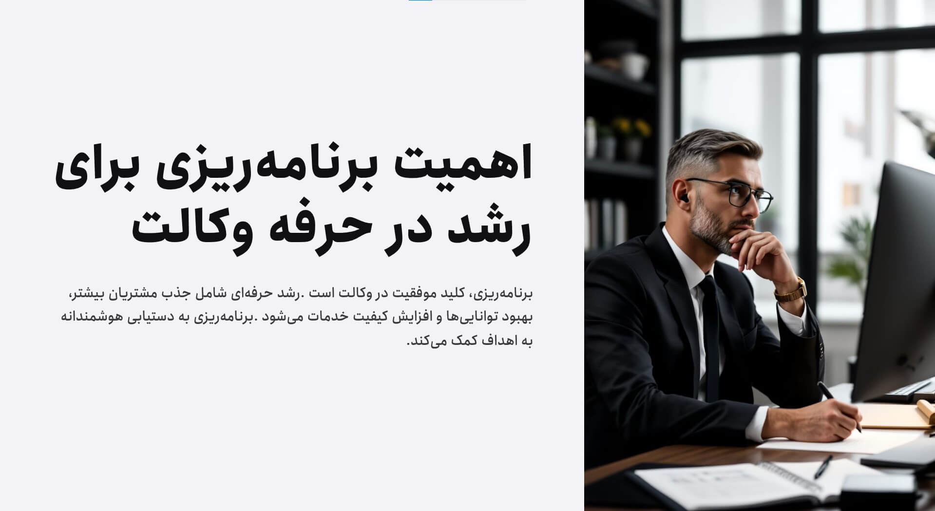 برنامهریزی یکی از کلیدیترین عوامل موفقیت در هر حرفهای است، به ویژه در وکالت که پیچیدگیها و چالشهای فراوانی دارد. رشد حرفهای نه تنها به معنای جذب مشتریان بیشتر است، بلکه بهبود تواناییها، ارتقای مهارتها و افزایش کیفیت خدمات را نیز شامل میشود. برنامهریزی به شما کمک میکند تا به صورت هوشمندانه و استراتژیک به اهداف خود دست یابید و از فرصتها به بهترین شکل استفاده کنید. در این جلسه به اهمیت برنامهریزی برای رشد در حرفه وکالت و چگونگی ایجاد یک نقشه راه مؤثر میپردازیم.